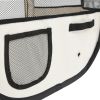 This playpen, with the dimensions of 49.2"x49.2"x24", is perfect for using at home or travelling. It includes a carrying bag for convenient storage. It is lightweight and yet very sturdy, thanks to the strong steel frame. The mesh roof and door can be opened or closed quickly with the zipper. The side nets ensure good air circulation and great visibility. Additionally, the side pockets are suitable to keep small items, like toys. This run cage can be easily stored with its foldable design when not in use.Color: Pink and creamMaterial: Polyester, steelDimensions: 49.2" x 49.2" x 24" (W x D x H)Size of each panel: 19.3" x 24" (W x H)Includes 8 panelsSturdy frameWith zipperFoldable designIncludes carrying bagCalifornia Proposition 65